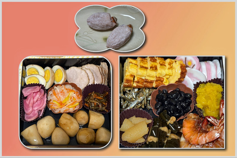 おせちは今年から2段になった。去年までは3段目に煮物を作っていたが、煮物は2段目の里芋のみ。ほかのもので自作が困難なもの(たとえばかまぼこ)など以外は、作ったものもあるし、詰めただけのものも。